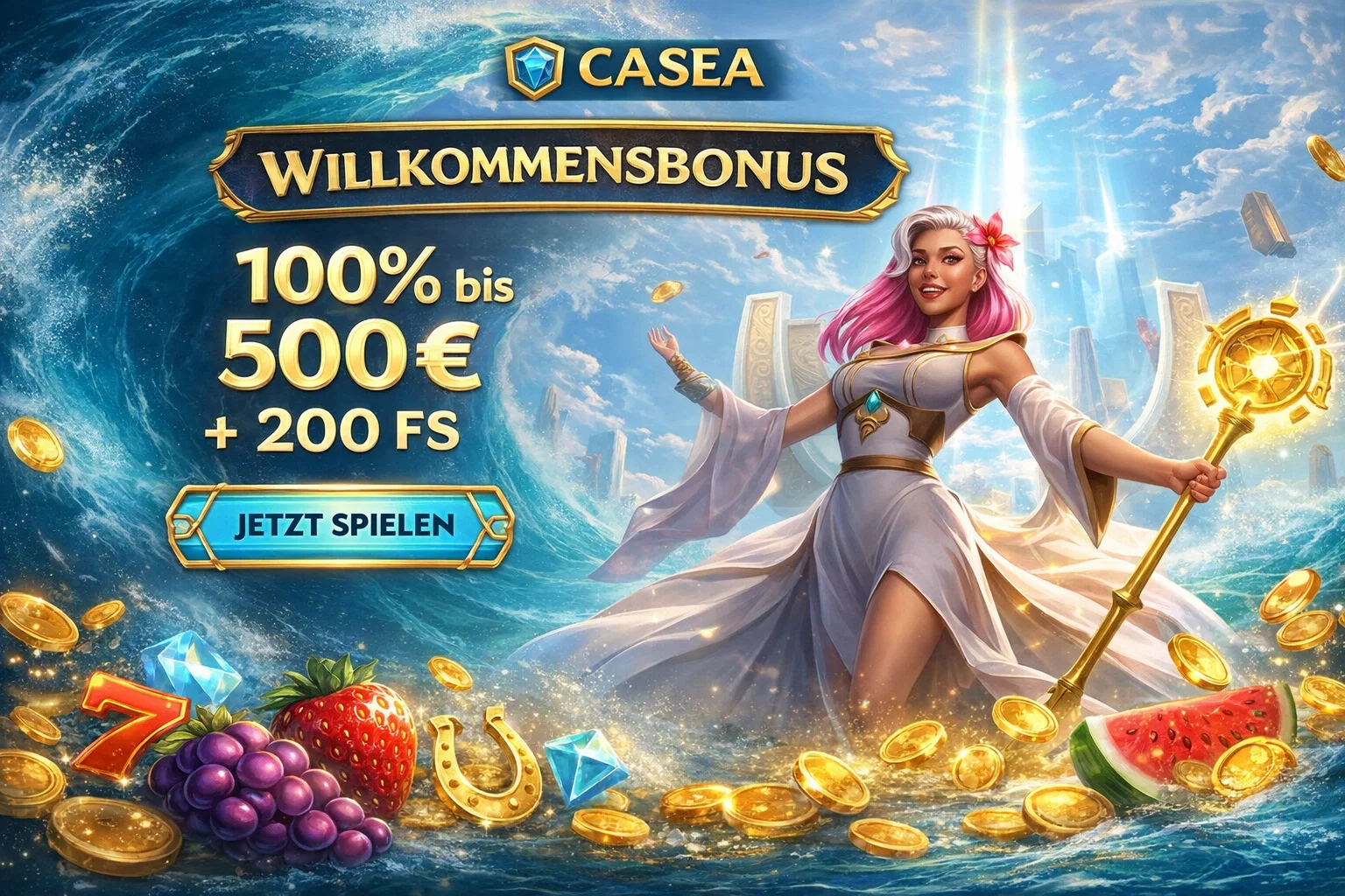 Das Online Casino casea startete 2026. Betreiber: Stable Tech N.V. Im Test festgestellt: 7.000+ Spiele, vollständiges Live Casino mit 200+ Tischen, Sportwetten auf 20+ Sportarten und ein gestaffeltes Bonuspaket bis 1.750 €. Für österreichische Spieler besonders relevant: EPS-Überweisung ist verfügbar.